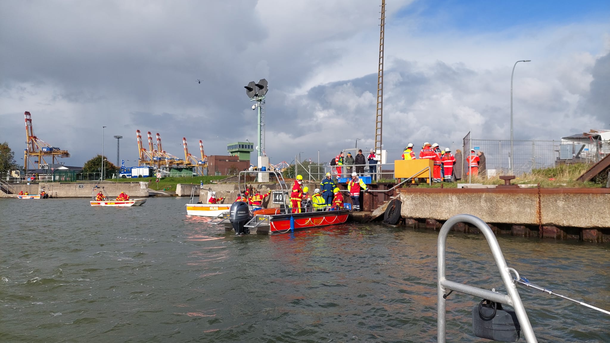 Feuerwehr Bremerhaven - Ortspolizeibehörde Bremerhaven - Bremenports - Entsorgungsbetriebe Bremerhaven - Deutsche Lebensrettungsgesellschaft (DLRG) - Deutsches Rotes Kreuz (DRK) - Wasserschutzpolizei - Malteser Hilfsdienst (MHD) - Johanniter Unfallhilfe (JUH) - Technisches Hilfswerk (THW)