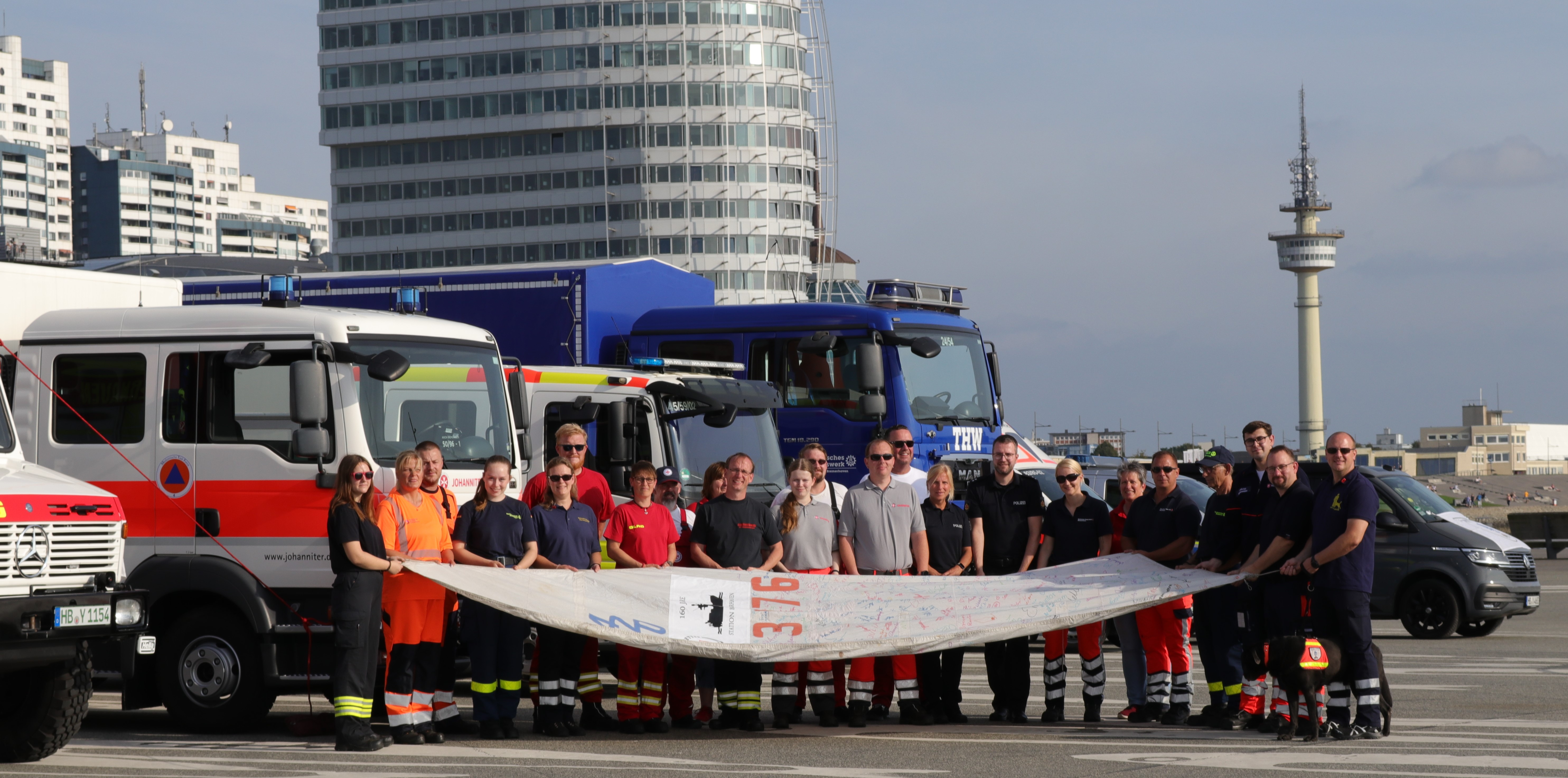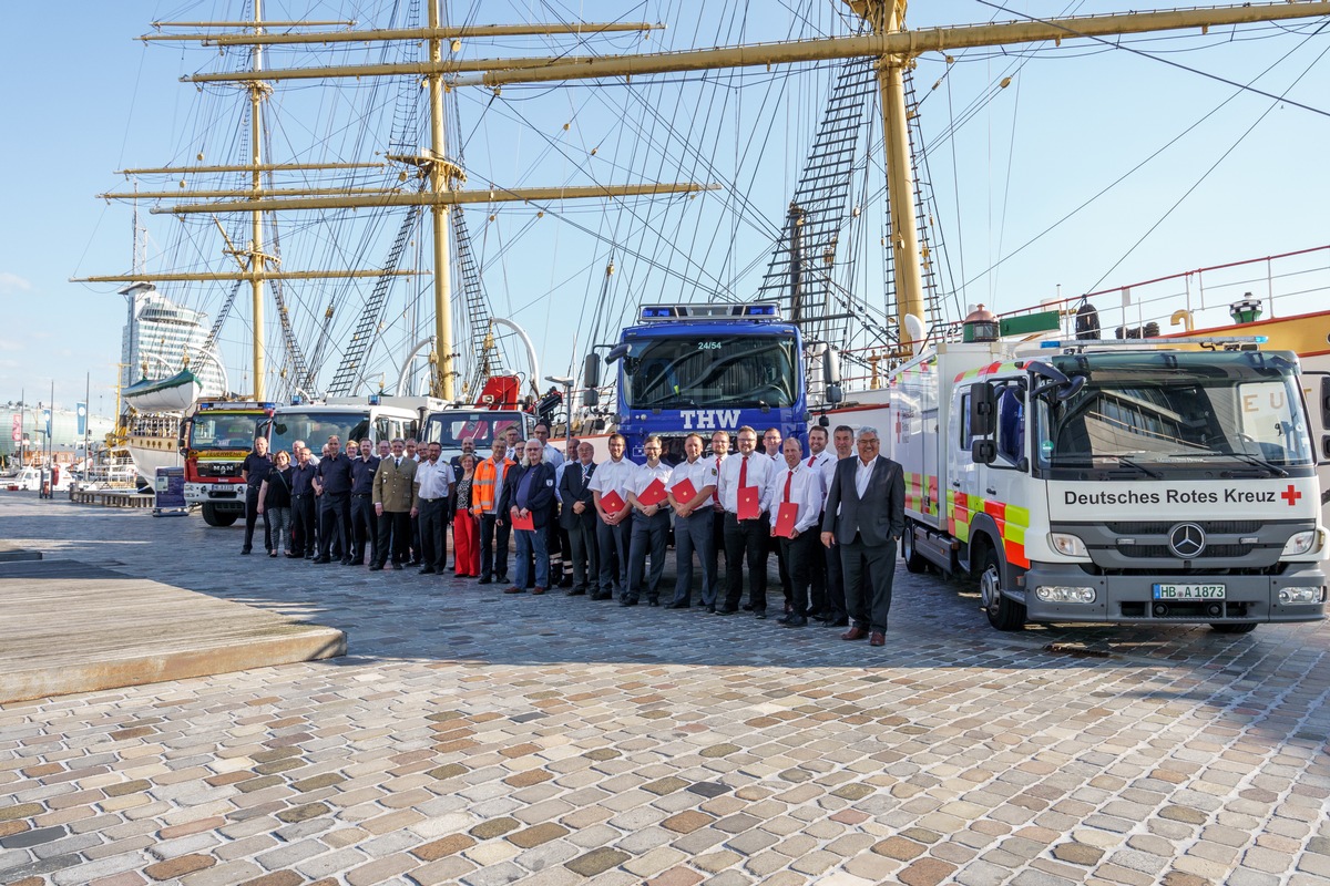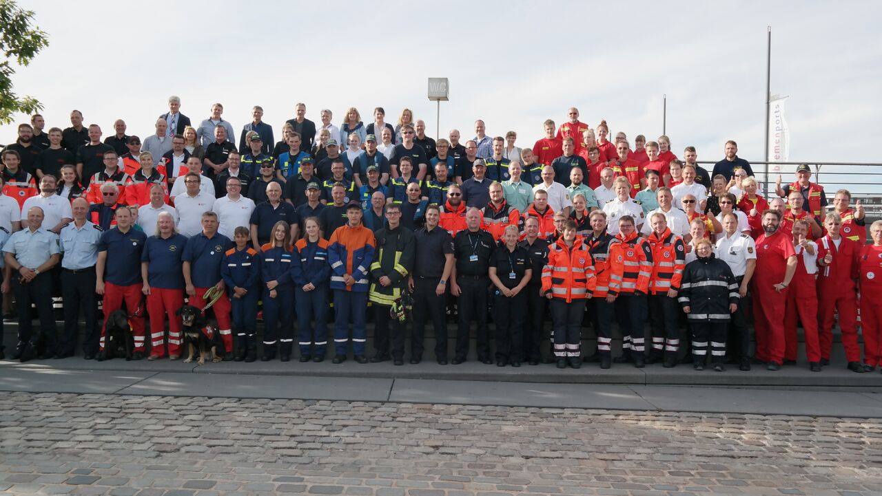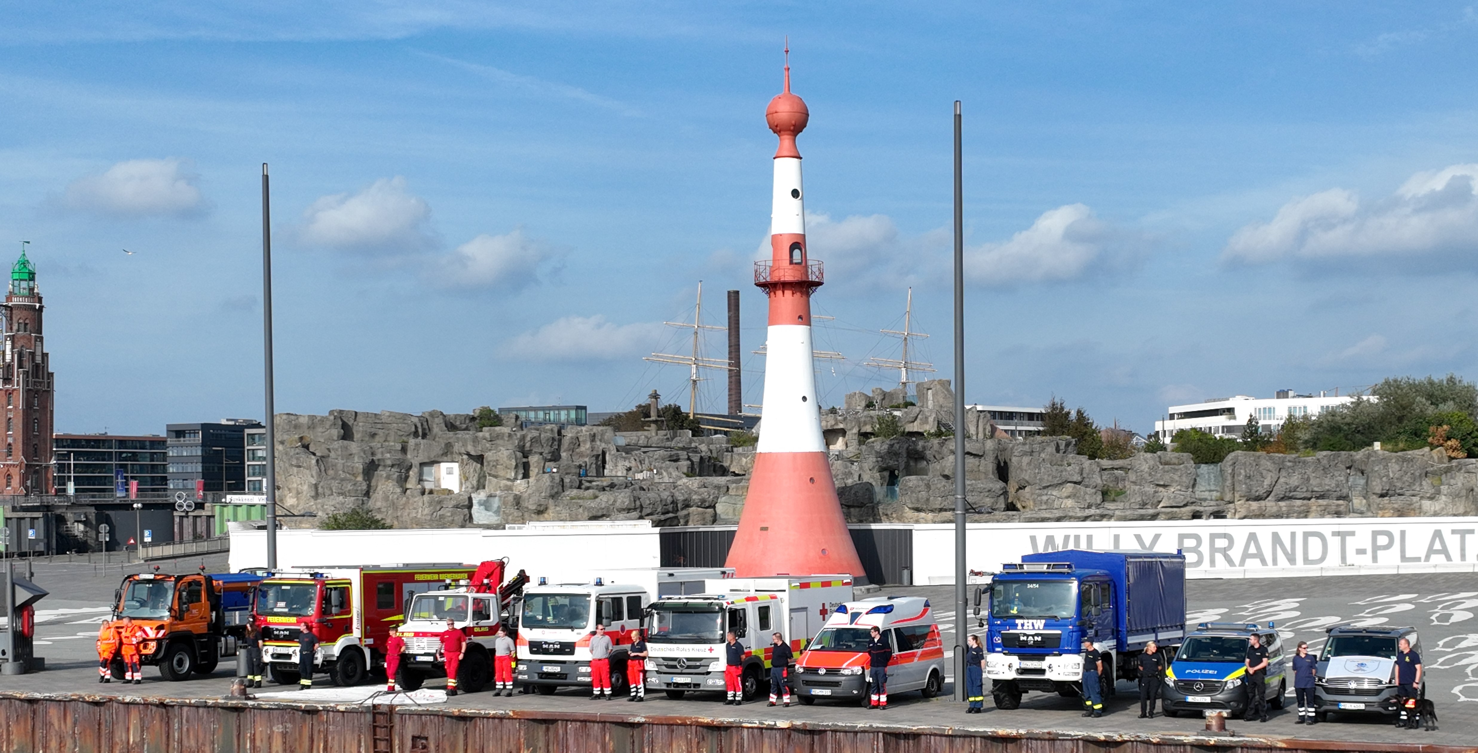 Feuerwehr Bremerhaven - Ortspolizeibehörde Bremerhaven - Bremenports - Entsorgungsbetriebe Bremerhaven - Deutsche Lebensrettungsgesellschaft (DLRG) - Deutsches Rotes Kreuz (DRK) - Malteser Hilfsdienst (MHD) - Johanniter Unfallhilfe (JUH) - Technisches Hilfswerk (THW)